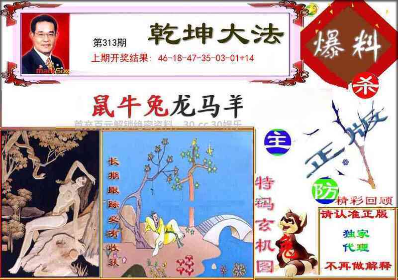| 313期:七肖 | 兔龙鼠鸡马蛇猪 | 开:龙38 |